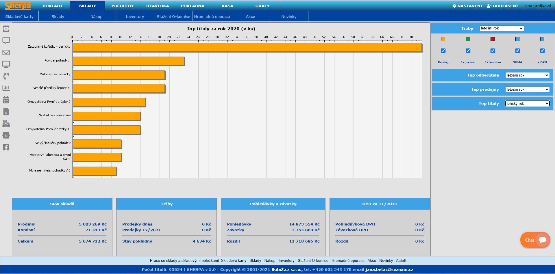 Modul Grafy je dalším mocným analytickým nástrojem, který v podobě grafu zobrazuje důležité analytické informace, jak ekonomického, tak i účetního a marketingového charakteru. Nástroj umožňuje velice rychle v časově volitelném rozsahu analyzovat data vašeho podnikání, a umožní Vám se rychle rozhodovat co děláte dobře a co je potřeba napravit. Tento modul je taktéž velice živý, protože se stále vyvíjí na základě požadavků uživatelů a zkušeností z provozu.