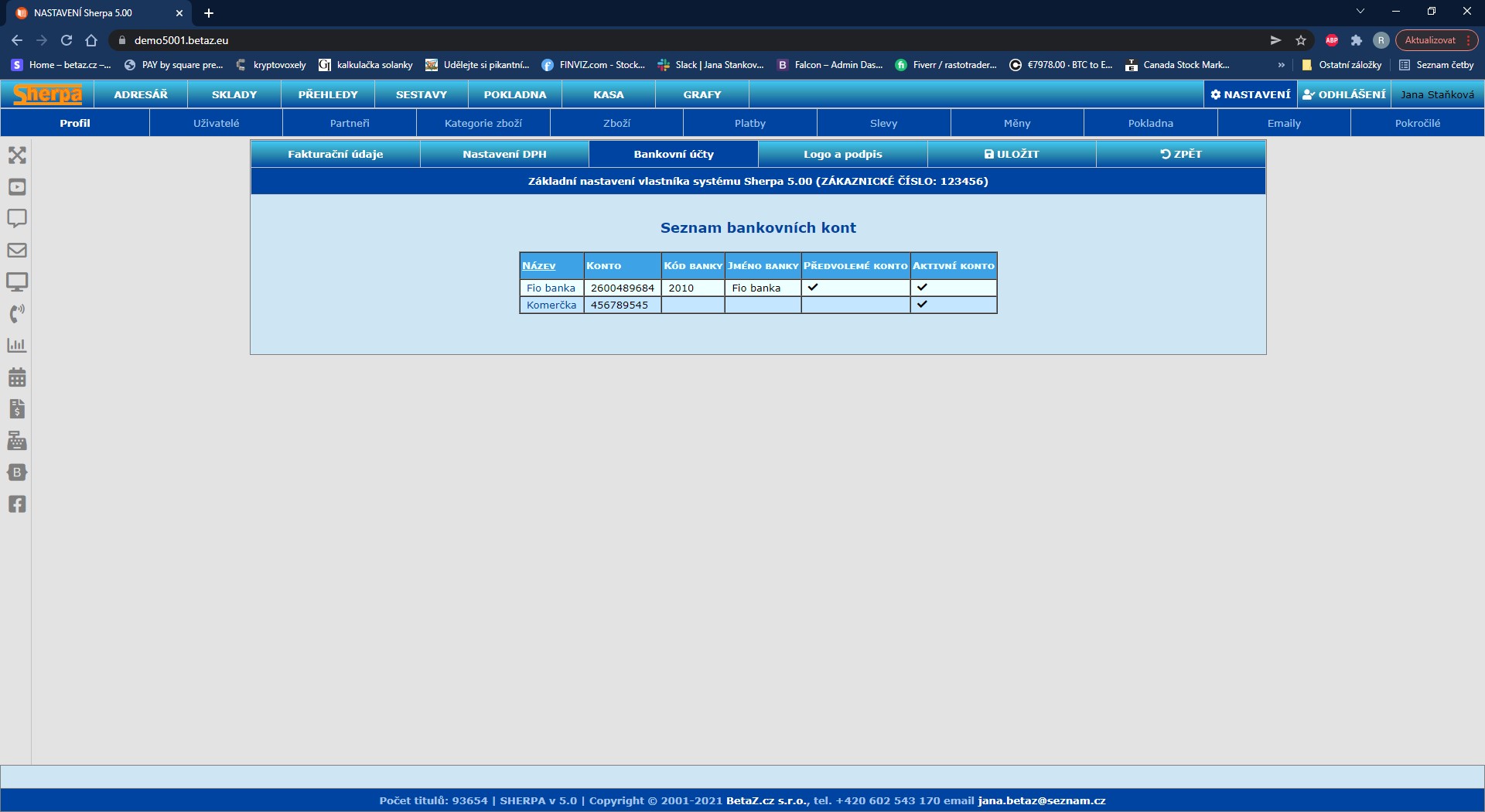 Nastavení bankovních účtů