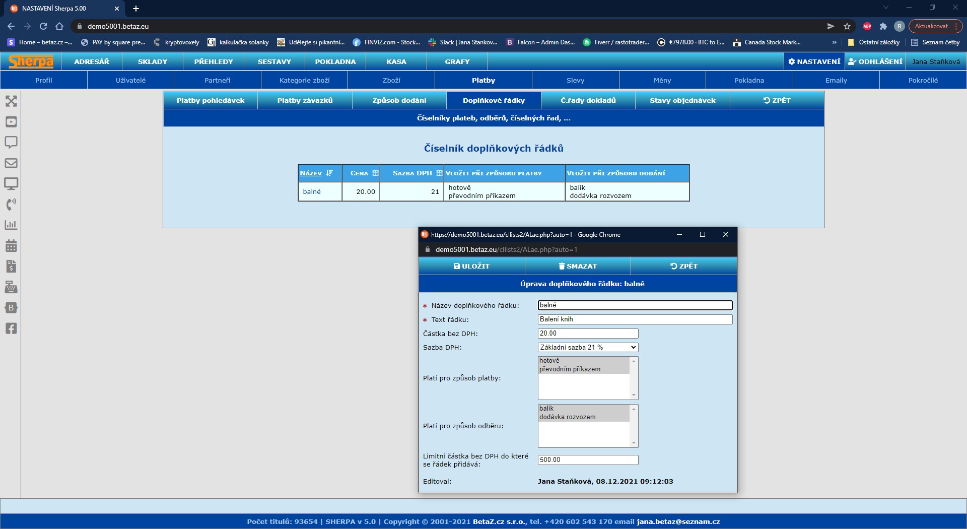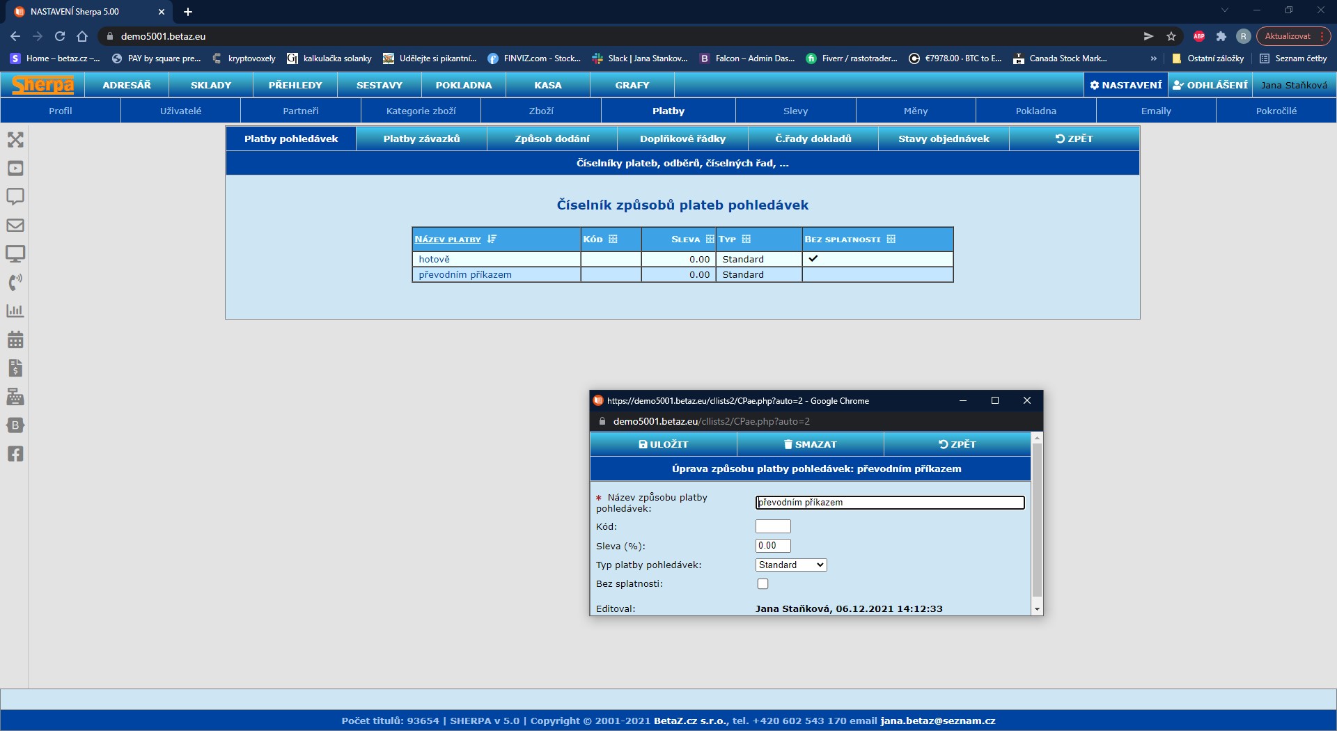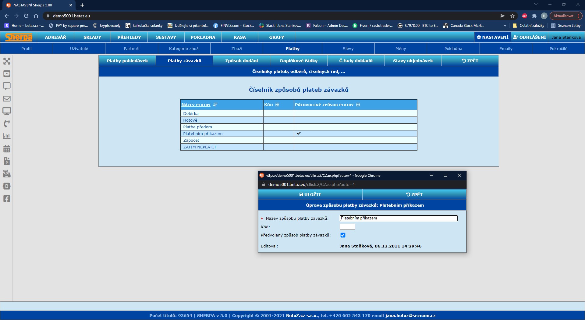 Nastavení číselníků – Platby