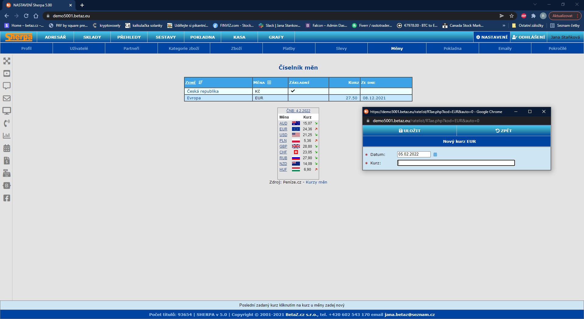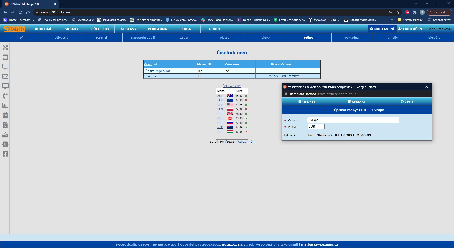 Nastavení číselníků – Měny