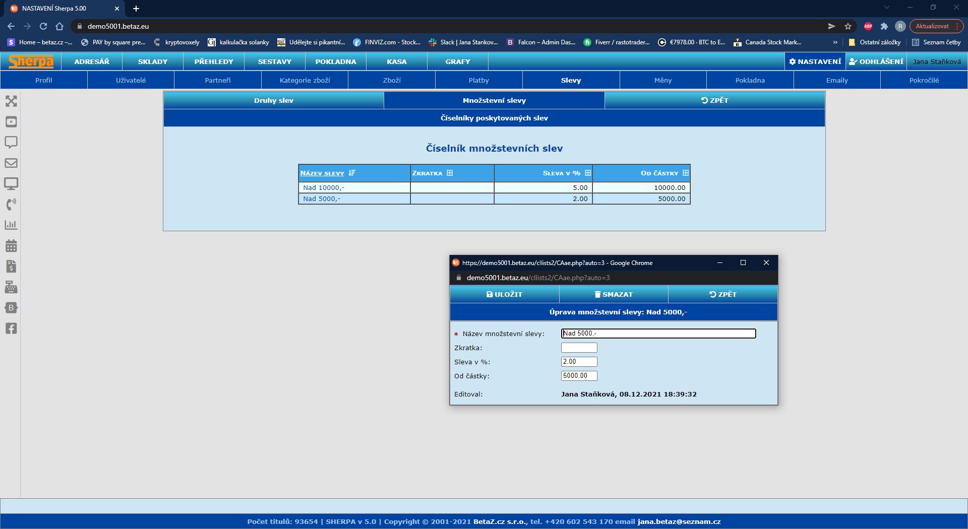 Nastavení číselníků – Slevy