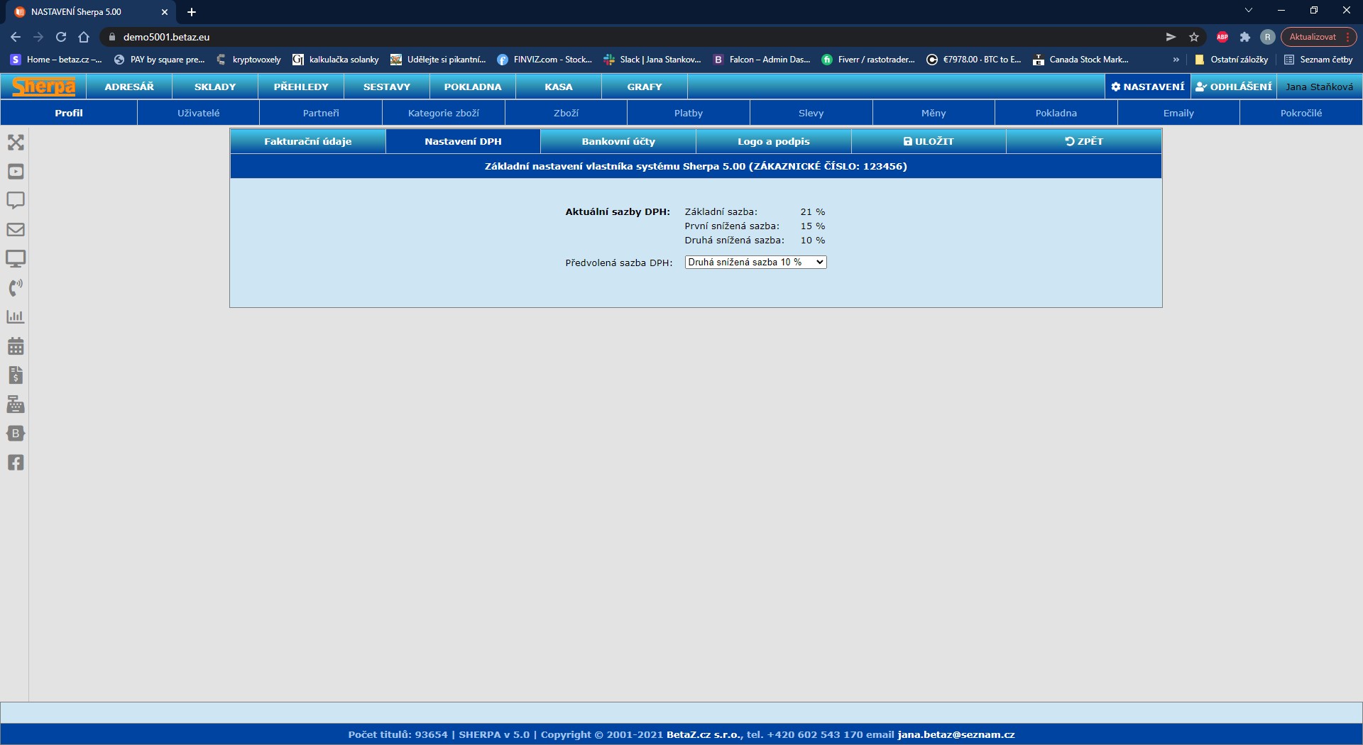 V Profilu se nastavují základní Fakturační údaje uživatele (společnosti) a je to povinná položka ), které se budou zobrazovat v každém vystaveném dokladu.