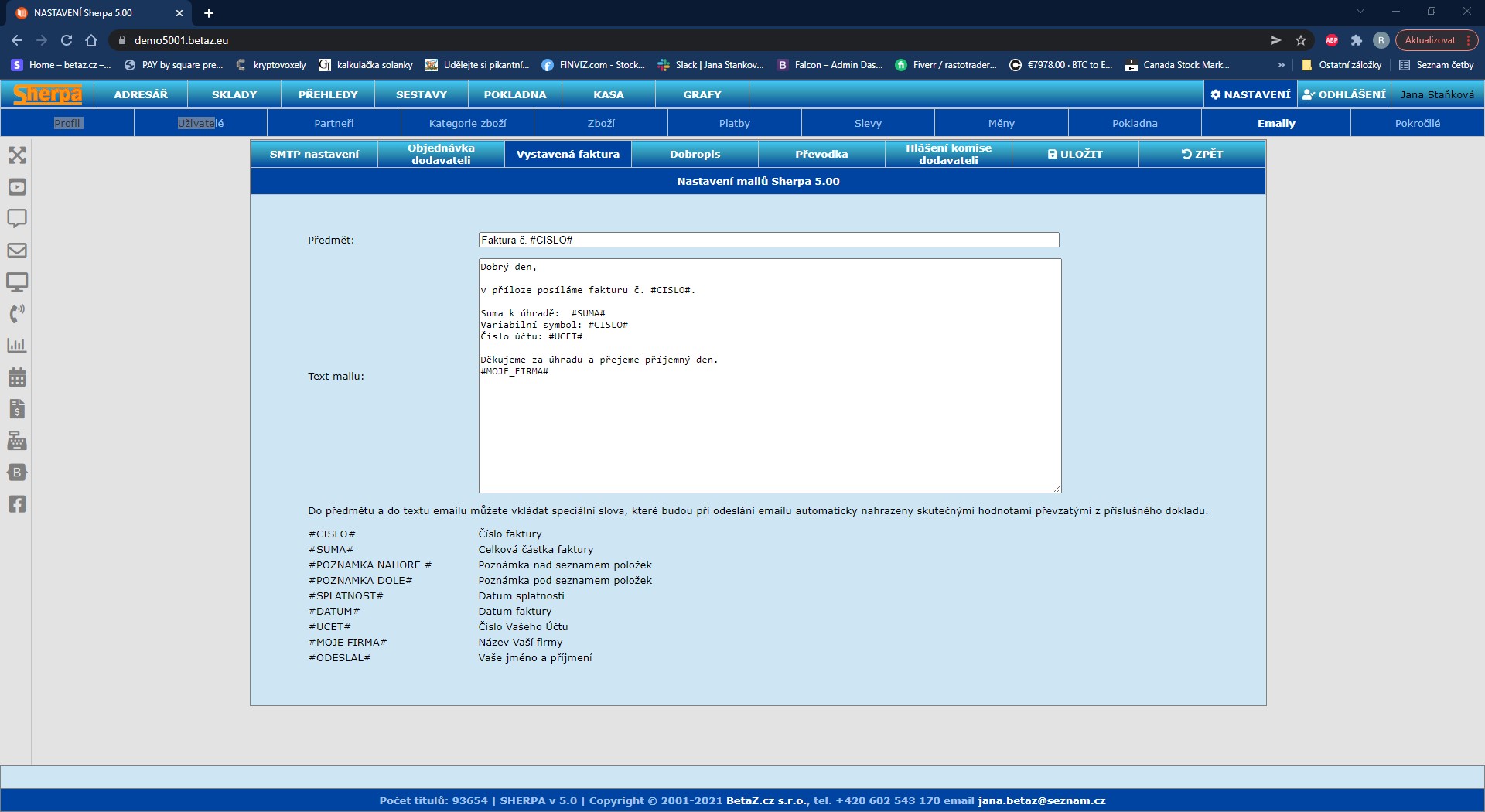 Nastavení emailu – vystavené faktury