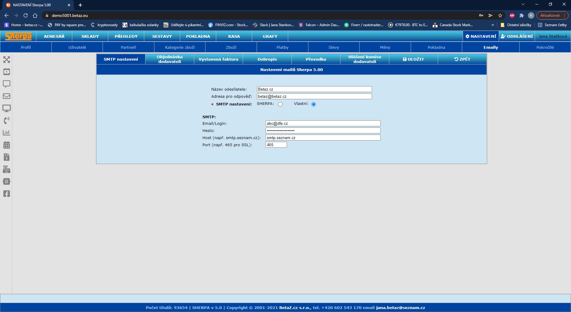 Nastavení SMTP