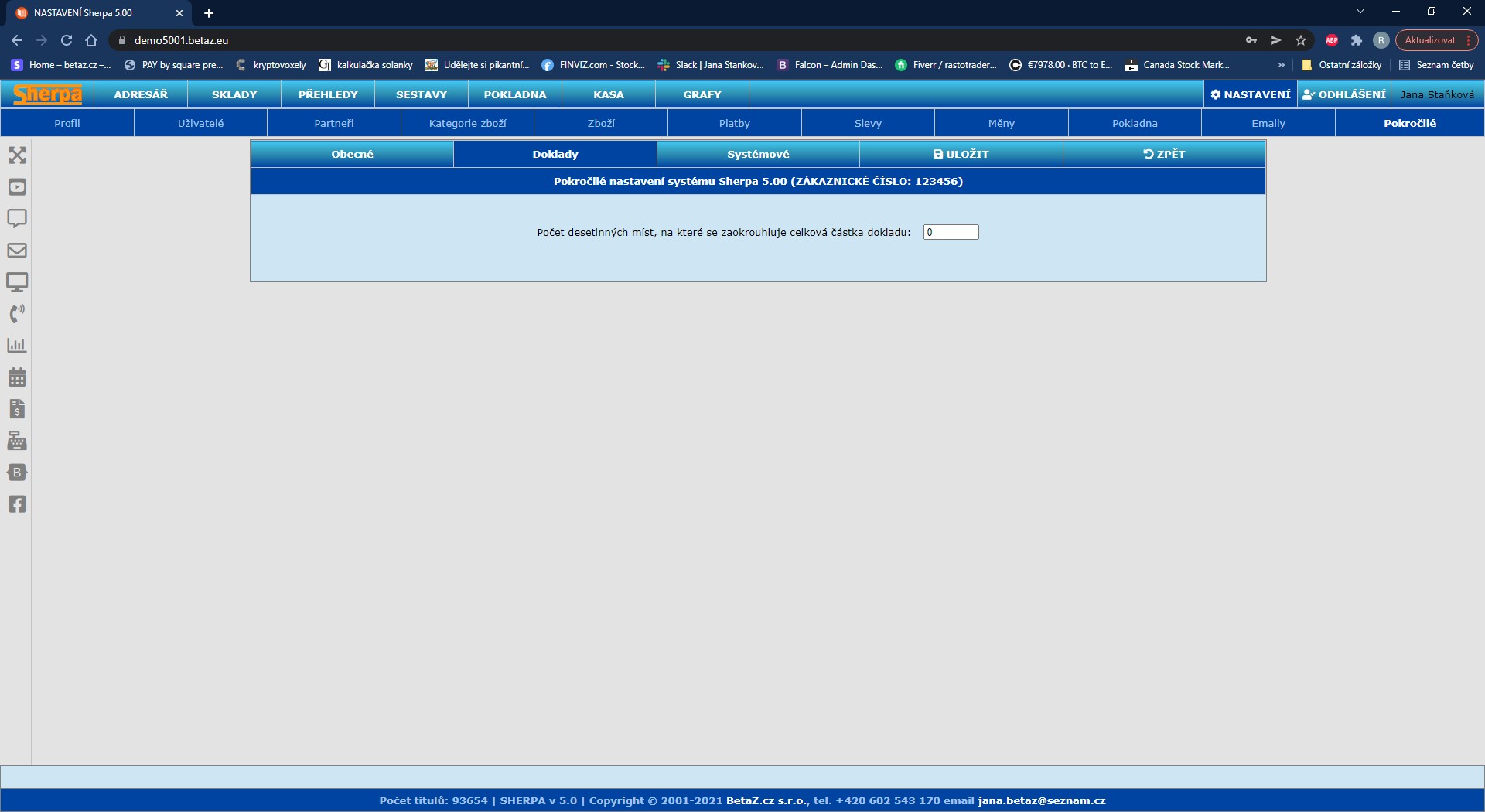 Pokročilé nastavení-doklady