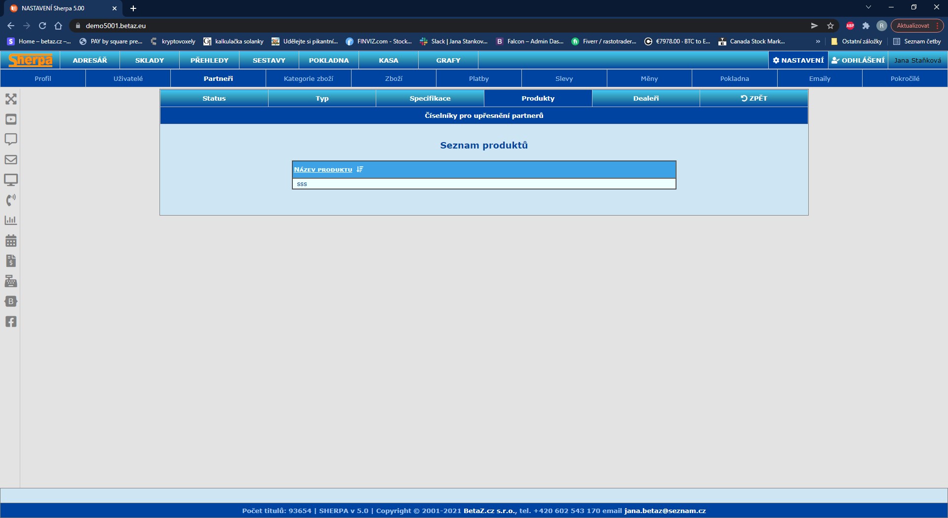 Seznam produktů partnera