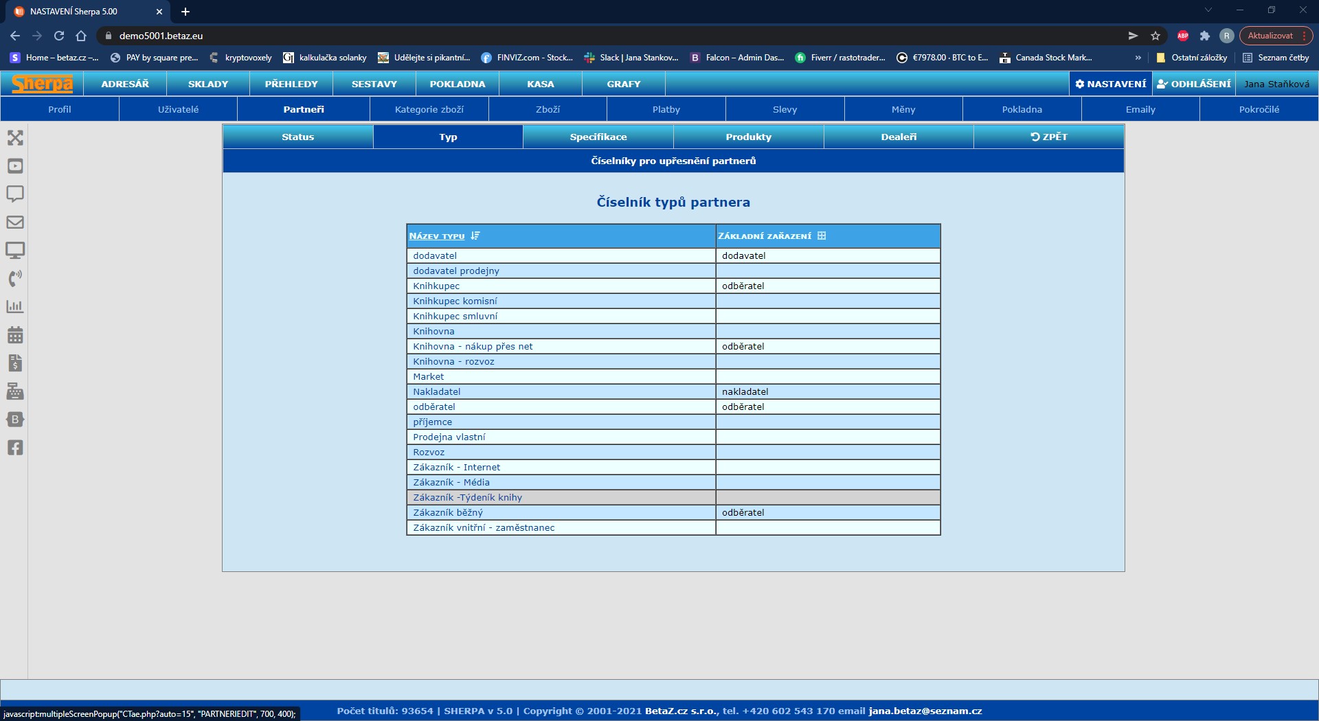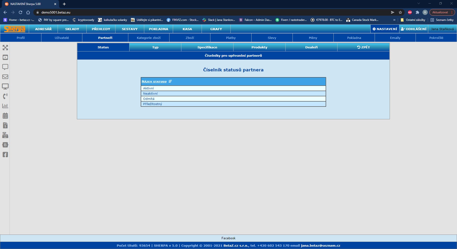 Nastavení číselníků – Partneři