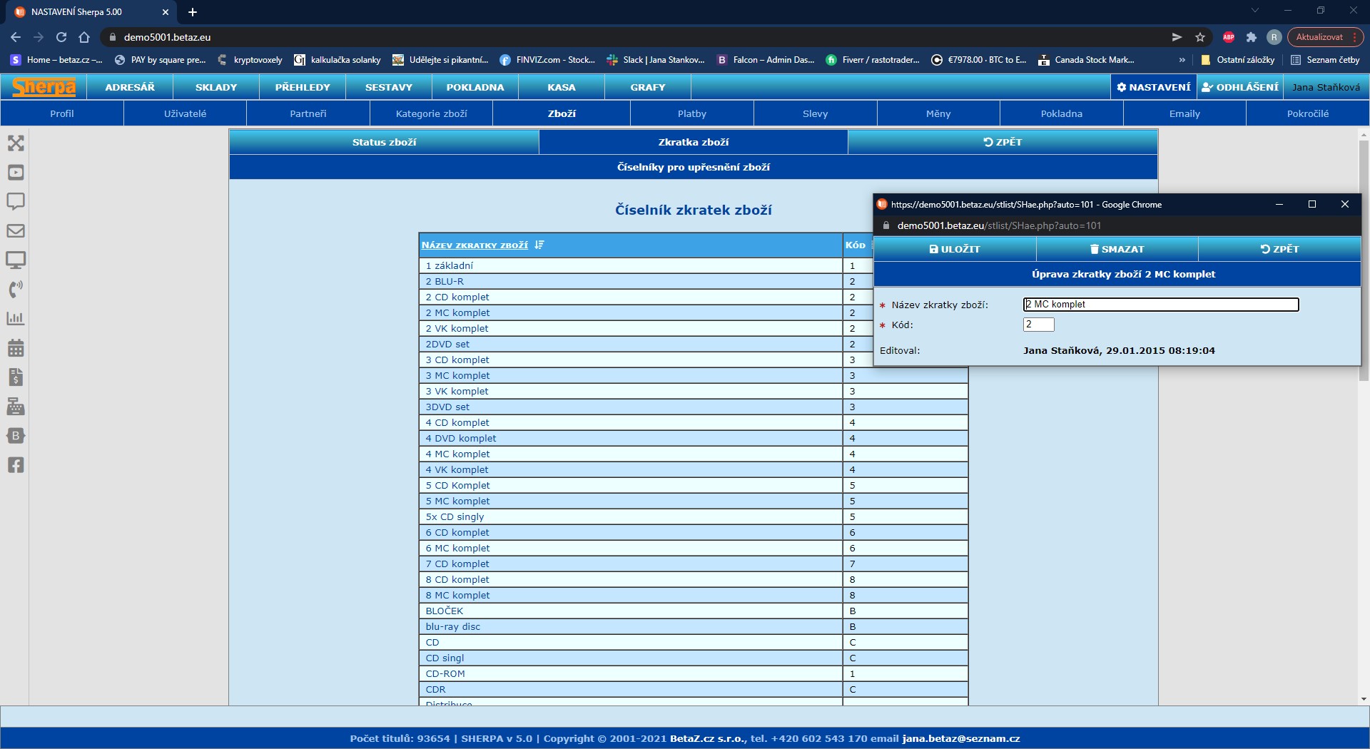 Nastavení číselníků – Zboží