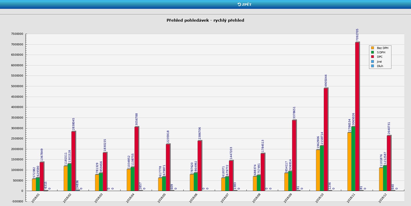 Příklad grafického zobrazení pohledávek