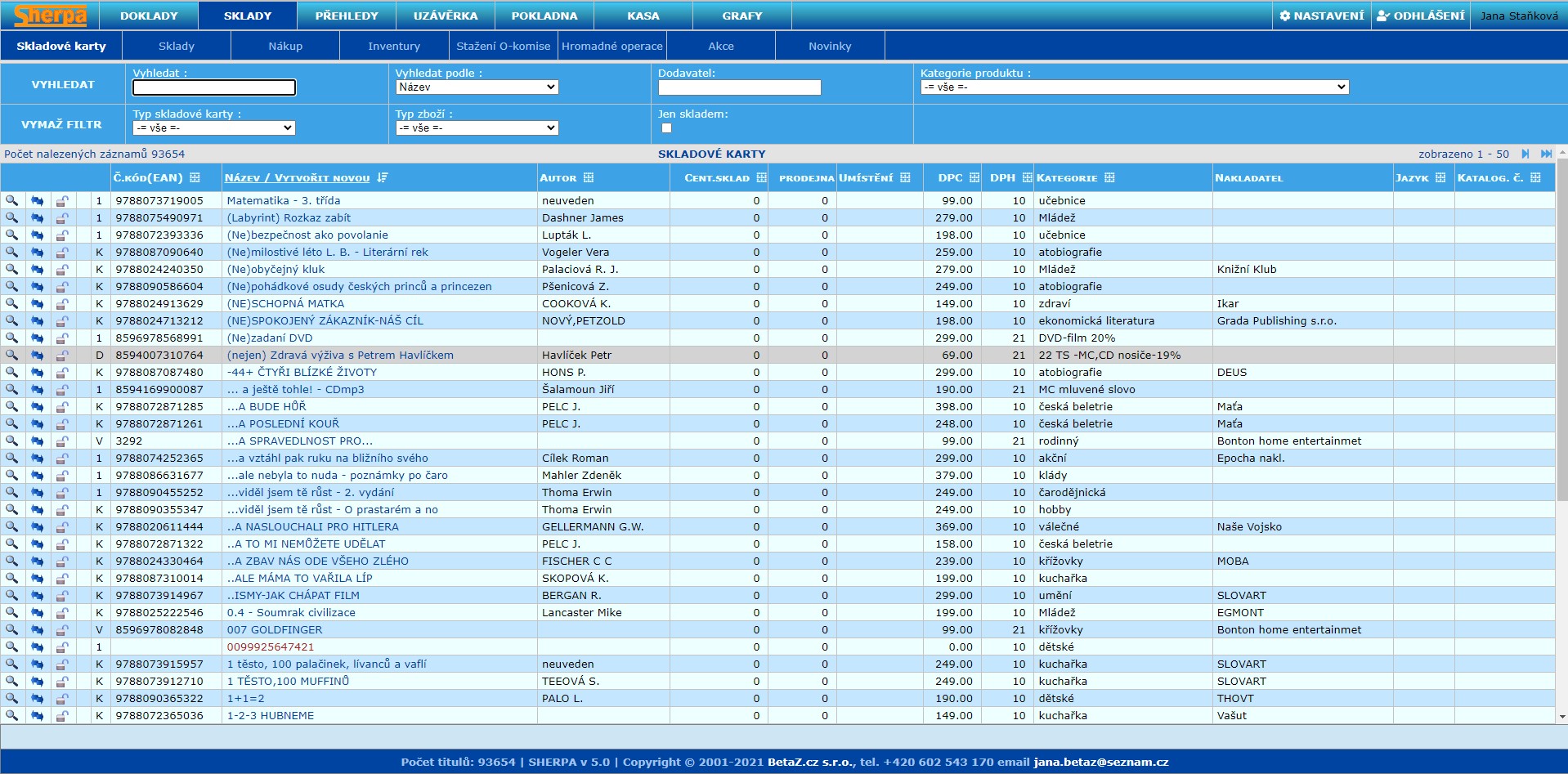 Tvorba a obsah skladové karty je dán léty zkušeností a zpětné vazby uživatelů. Obsah a rozsah je z pohledu knižního trhu velice robustní a obsahuje všechny důležité informace o zboží.